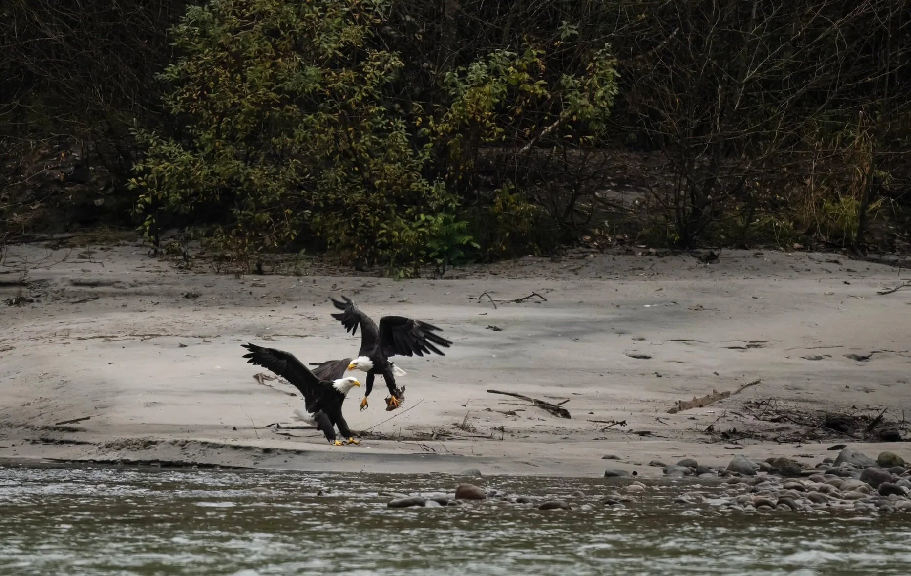 Bald eagles are opportunistic hunters and scavengers, and few seasonal events provide as much food as the end of the salmon run. After spawning, Pacific salmon die, their bodies carried downstream or resting along riverbanks. These fish become a vital winter food source, especially when other prey is scarce.