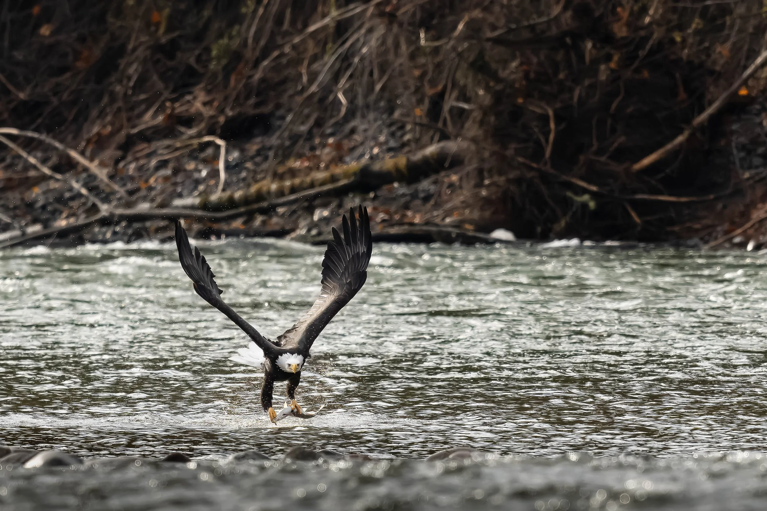 Eagles travel long distances to take advantage of this abundance, congregating in places where salmon runs are strong and accessible. Some remain for weeks, timing their movements to the rhythms of the rivers.